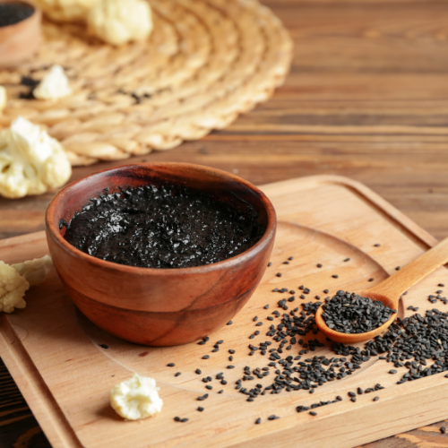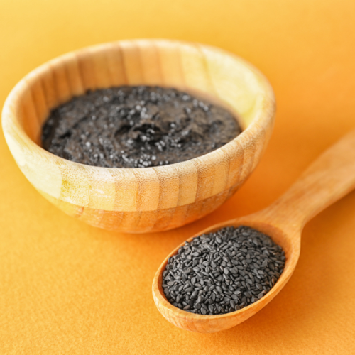 100% βιολογικοί σπόροι μαύρου σουσαμιού.