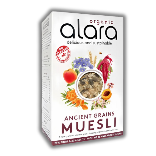 Ανακάλυψε το μυστικό της ισορροπημένης διατροφής με το μούσλι Ancient Grains της Alara. Μια μοναδική συνταγή που συνδυάζει θρεπτικούς αρχαίους σπόρους όπως ντίνκελ, σίκαλη, κριθάρι και βρώμη, χωρίς προσθήκη ζάχαρης. Ιδανικό για να ξεκινήσεις τη μέρα σου με ενέργεια και φυσική γεύση.