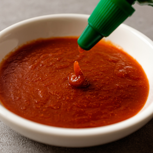 Κόκκινο τσίλι* (55%), νερό, σιρόπι αγαύης*, θαλασσινό αλάτι, σκόρδο*, ξύδι από μπράντυ*, πηκτικός παράγοντας: κόμμι γκουάρ*. *Βιολογικής γεωργίας.