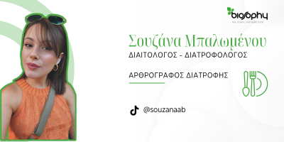 Η Σουζάνα Μπαλωμένου είναι Διαιτολόγος-Διατροφολός του Χαροκοπείου Πανεπιστημίου, με μεταπτυχιακό στην Κλινική Διαιτολογία από το ΑΠΘ. Ασχολείται με την online συμβουλευτική, ενώ παράλληλα είναι αρθρογράφος για διατροφικά θέματα. Επίσης, είναι εθελόντρια σε μια ΜΚΟ για τη σεξουαλική διαπαιδαγώγηση νέων και γονέων. Μέσω της συνεργασίας της με τη Biosophy θέλει να επεκτείνει τις γνώσεις των αναγνωστών σε θέματα wellbeing, σωστής διατροφής, αλλά και να παρέχει tips για το πώς μπορούν να ενσωματώσουν μια ισορροπημένη διατροφή στην καθημερινότητά τους.